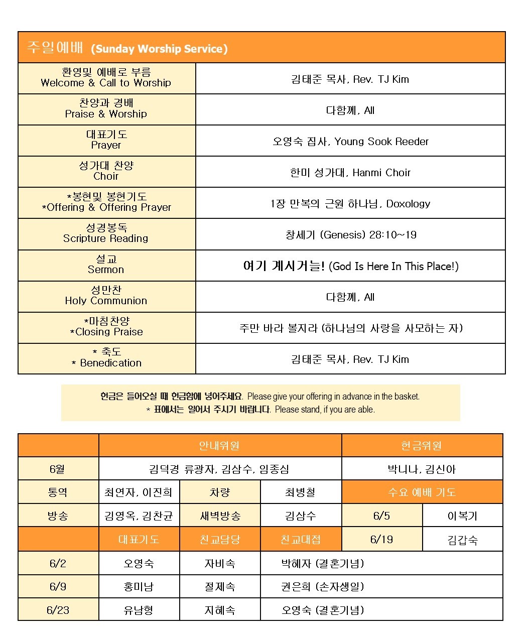 - 6/2 (주일) 1pm 목회위원회 (청년부실)