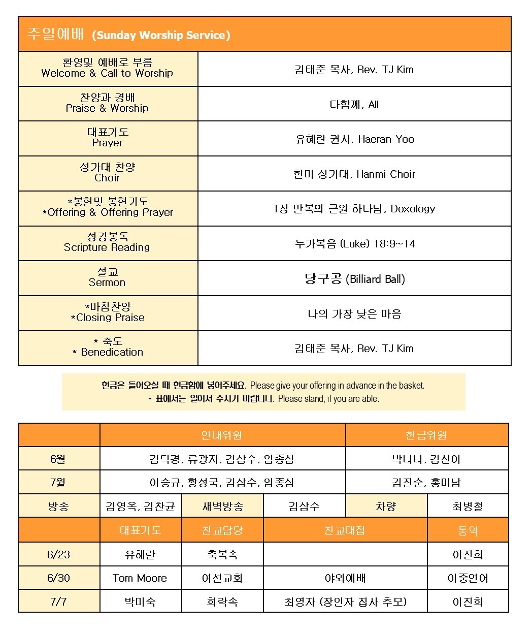 * 24년도 중간 재정 보고를 위한 교인 총회가 7월 7일 주일 예배후에 있겠습니다.