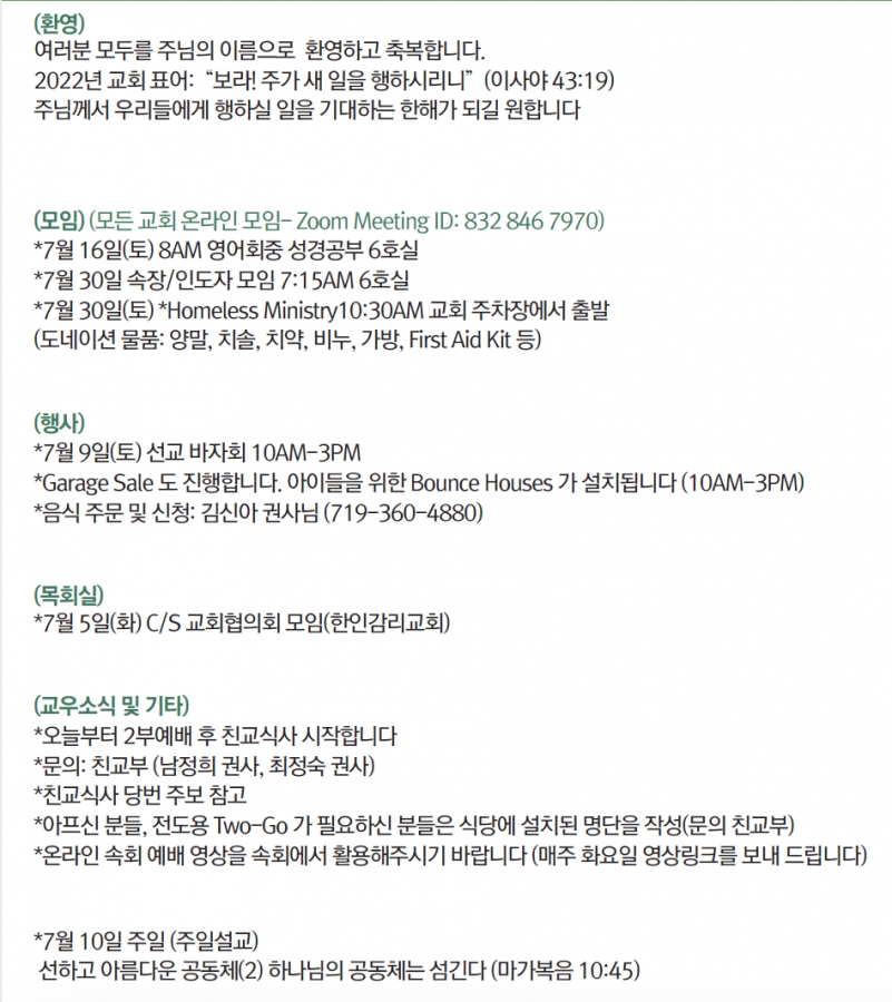 2022년 7월3일 교회소식 페이지 정보 작성자 한미연합감리교회 조회 986회 작성일 22-07-02 06:14 목록 본문 2022년 7월 3일 교회소식 댓글 0 댓글목록 등록된 댓글이 없습니다. 목록