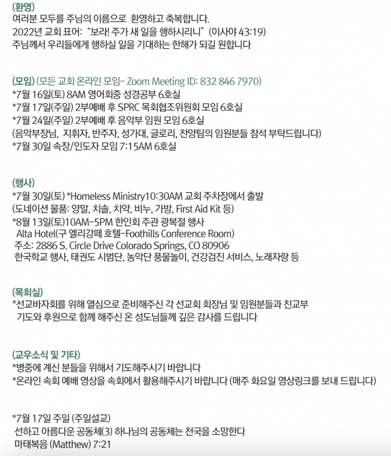 2022년 7월10일 교회소식 페이지 정보 작성자 한미연합감리교회 조회 916회 작성일 22-07-09 08:05 목록 본문 2022년 7월 10일 교회소식 댓글 0 댓글목록 등록된 댓글이 없습니다. 목록