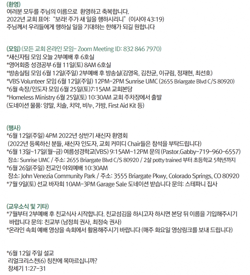 2022년6월5일 교회소식 페이지 정보 작성자 한미연합감리교회 조회 837회 작성일 22-06-04 04:23 목록 본문 2022년 6월 5일 교회소식 댓글 0 댓글목록 등록된 댓글이 없습니다. 목록