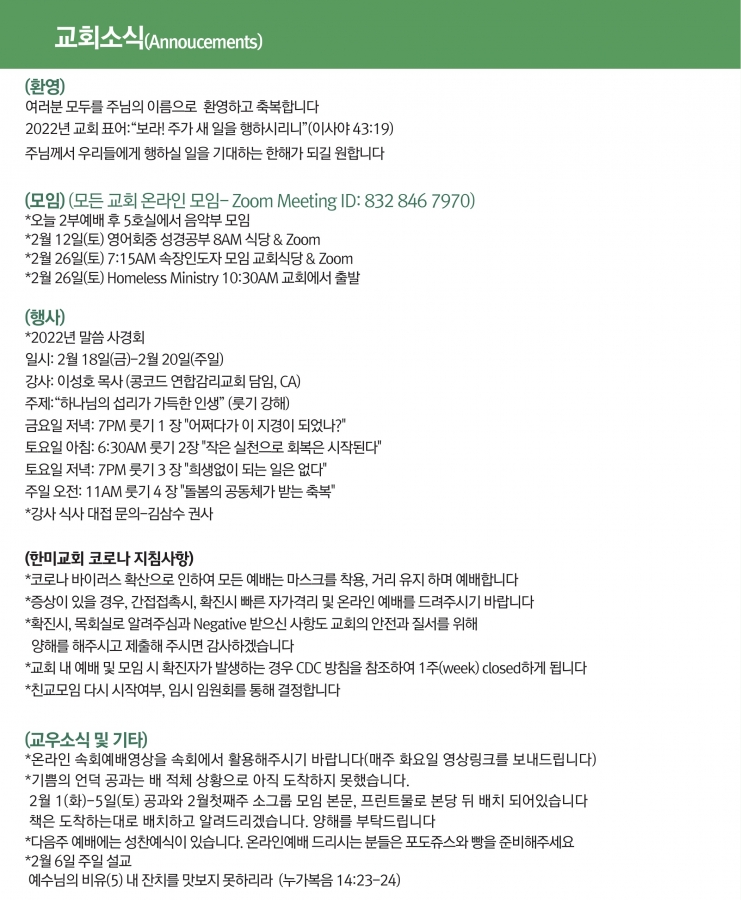 1월30일 교회소식 페이지 정보 작성자 한미연합감리교회 조회 760회 작성일 22-01-29 04:57 목록 본문 1월 30일 교회소식 댓글 0 댓글목록 등록된 댓글이 없습니다. 목록