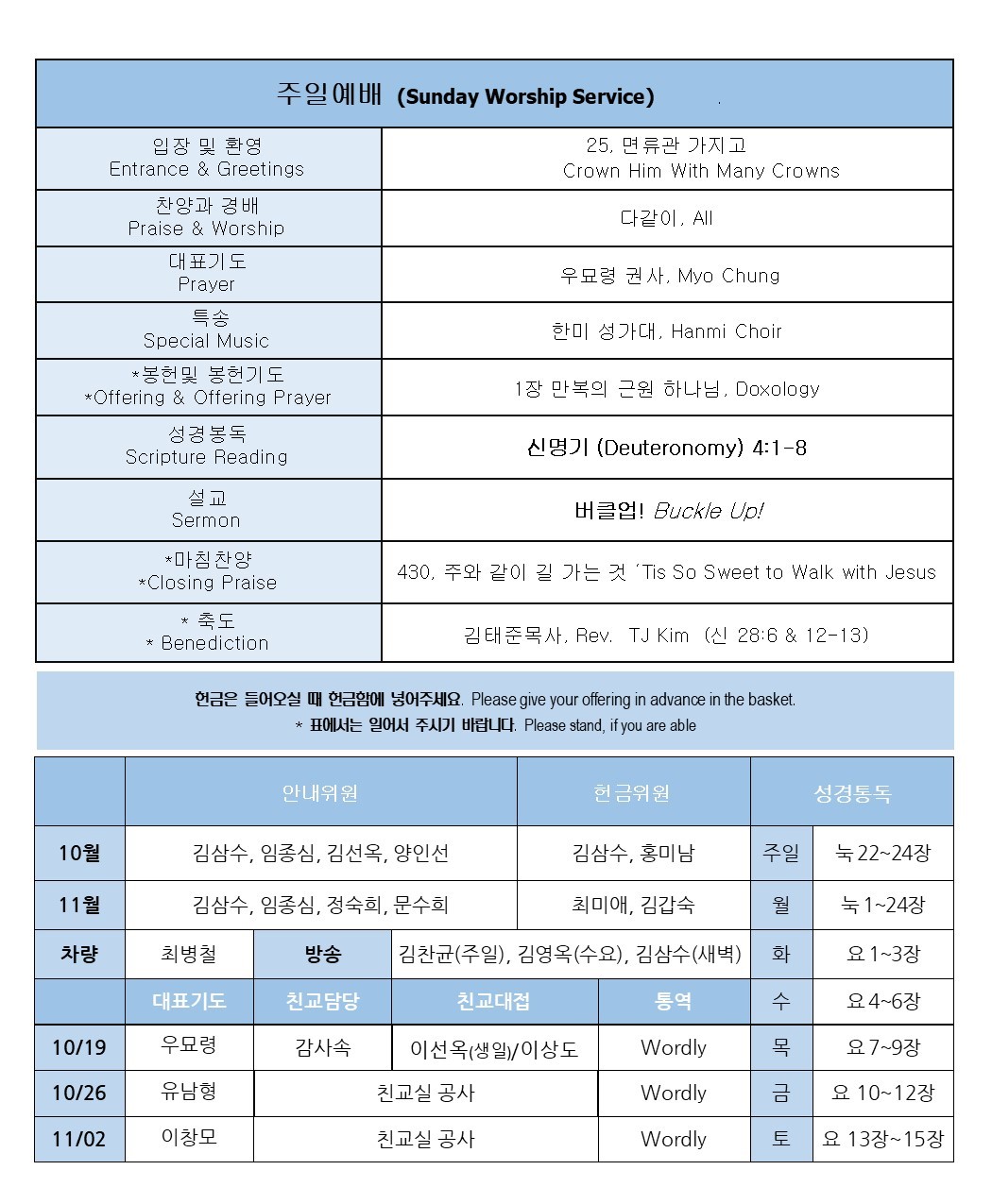 10/19/2025 - [KM] 교회소식