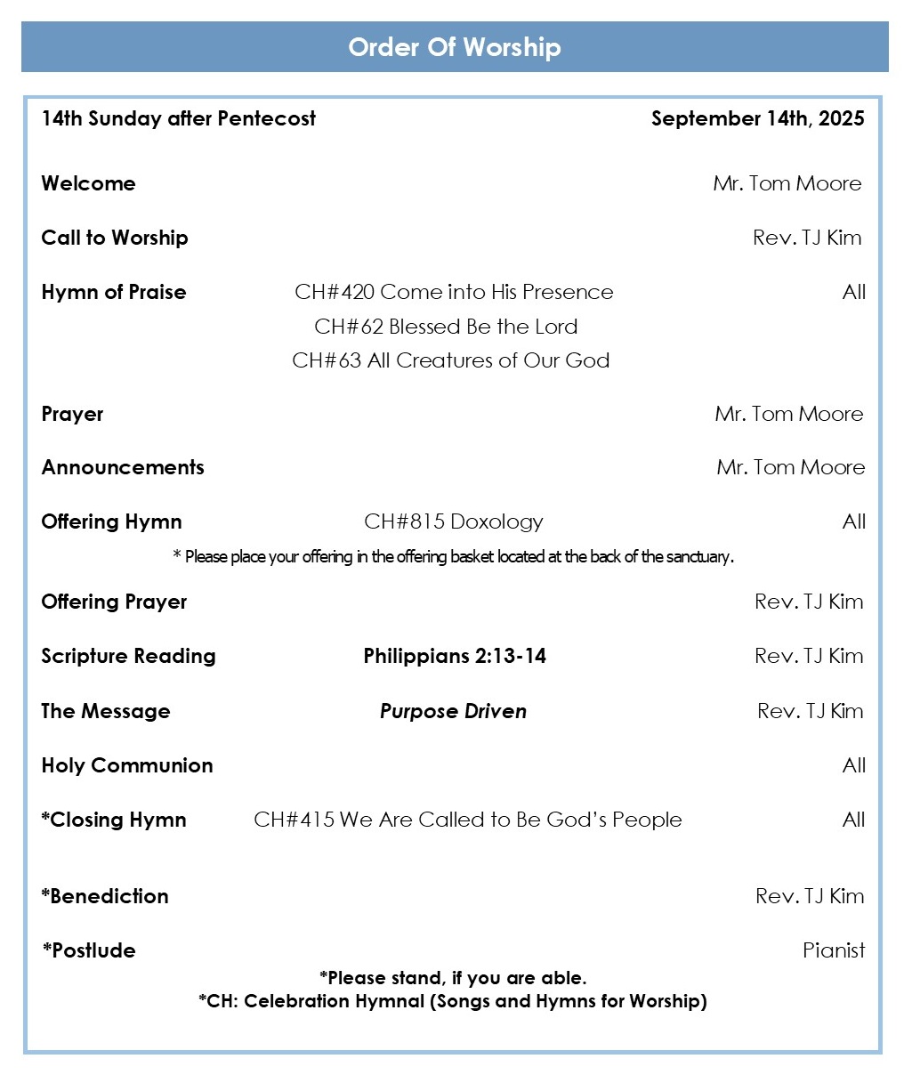 * Welcome! We are so glad that you are here to worship with us today!