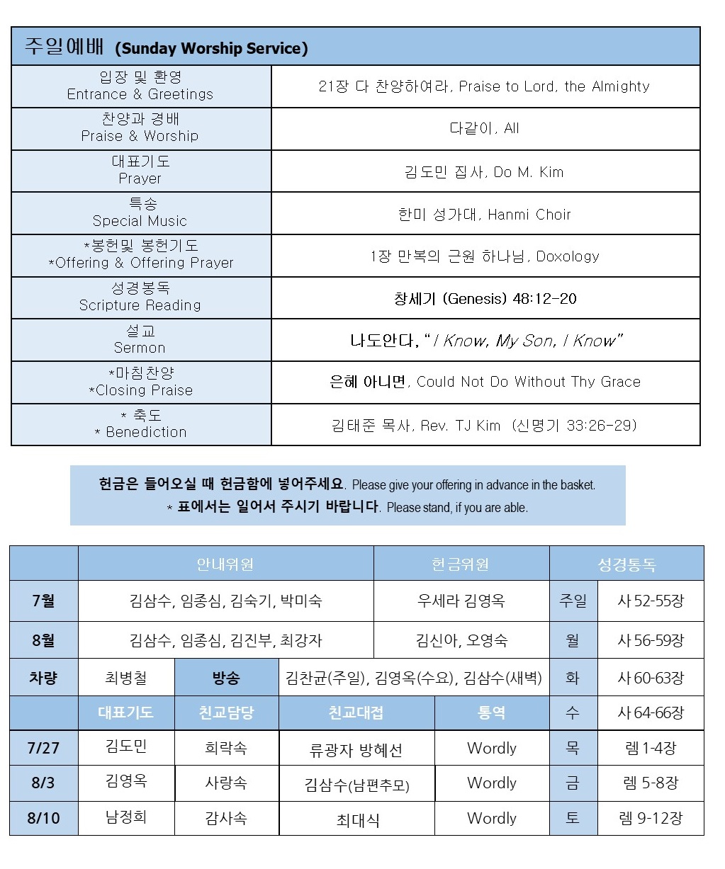 07/27/2025 - [KM] 교회소식