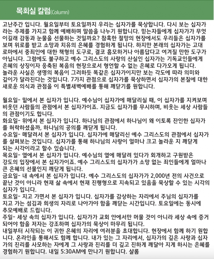 고난주간 페이지 정보 작성자 한미연합감리교회 조회 1,161회 작성일 21-03-28 06:40 목록 본문 고난주간 이전글Do Christian Live in Denial? 21.03.28 다음글What Does It Mean to Believe in Jesus Christ? 21.03.24 댓글 0 댓글목록 등록된 댓글이 없습니다. 목록
