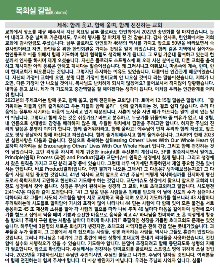 함께 웃고, 함께 울며, 함께 전진하는 교회