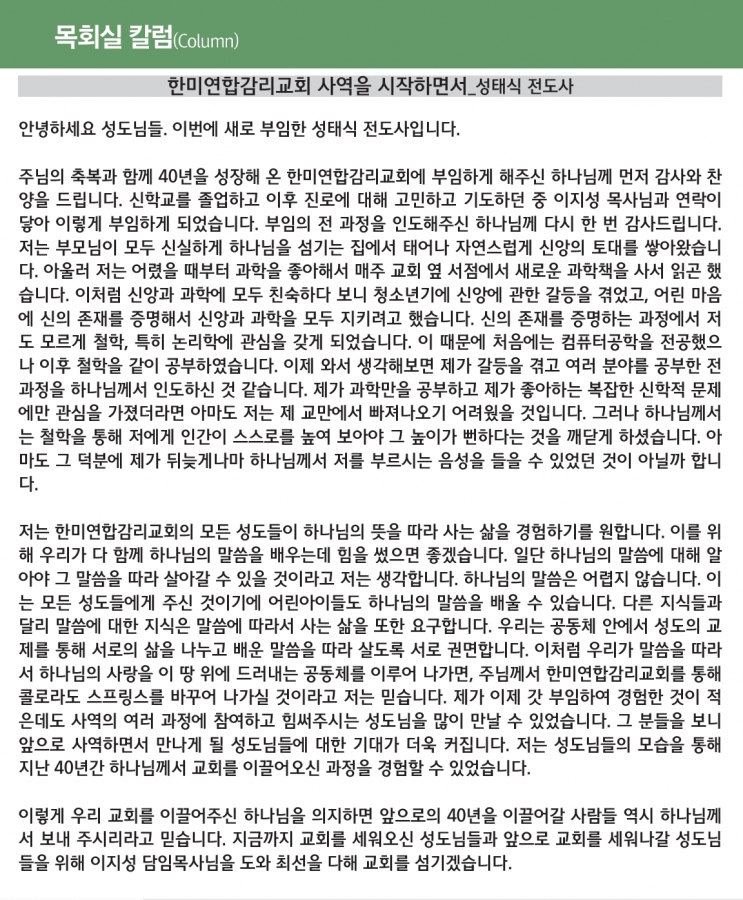 한미연합감리교회 사역을 시작하면서 (성태식 전도사)