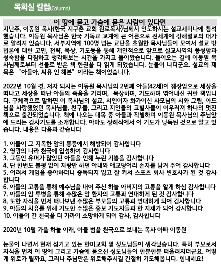 이땅에 묻고 가슴에 묻은 사람이 있다면 페이지 정보 작성자 한미연합감리교회 조회 1,099회 작성일 22-10-17 06:52 목록 본문 이땅에 묻고 가슴에 묻은 사람이 있다면 이전글디아스포라 교회 22.10.24 다음글이생의 자랑 22.10.10 댓글 0 댓글목록 등록된 댓글이 없습니다. 목록