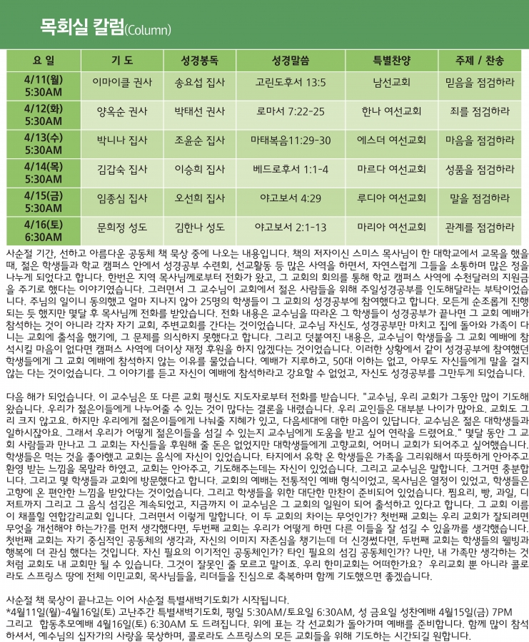 사순절, 선하고 아름다운 공동체 묵상 페이지 정보 작성자 한미연합감리교회 조회 1,112회 작성일 22-03-27 01:01 목록 본문 사순절, 선하고 아름다운 공동체 묵상 이전글God's Great Love 22.04.03 다음글In Awe of the Lord 22.03.27 댓글 0 댓글목록 등록된 댓글이 없습니다. 목록