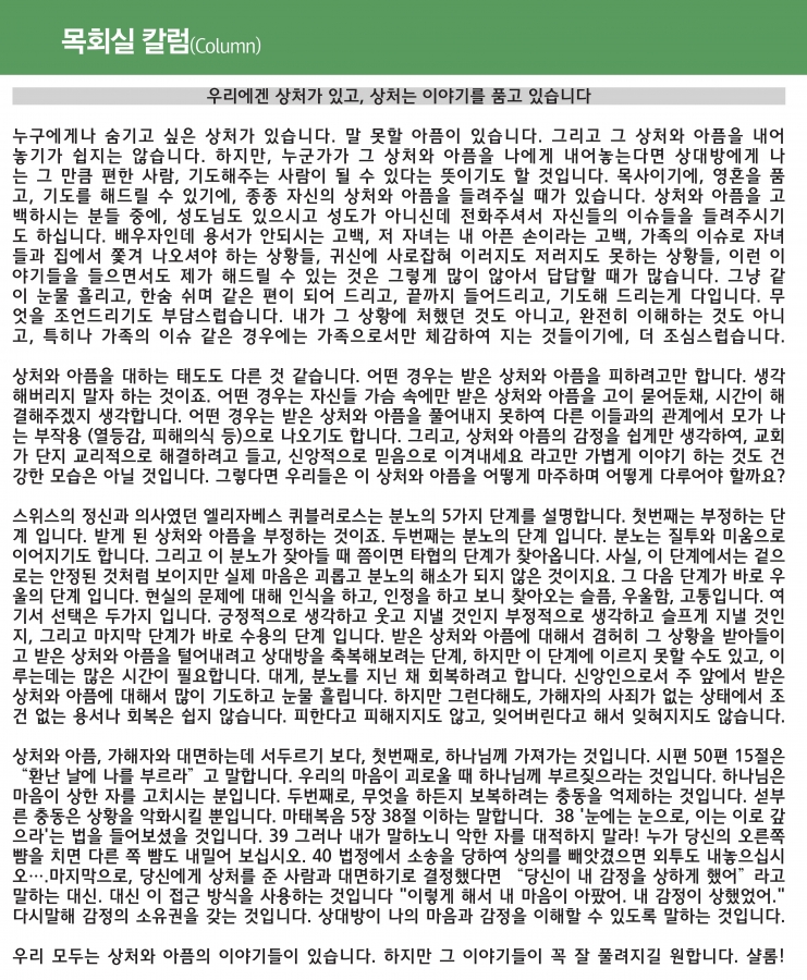 우리에겐 상처가 있고, 상처는 이야기를 품고 있습니다