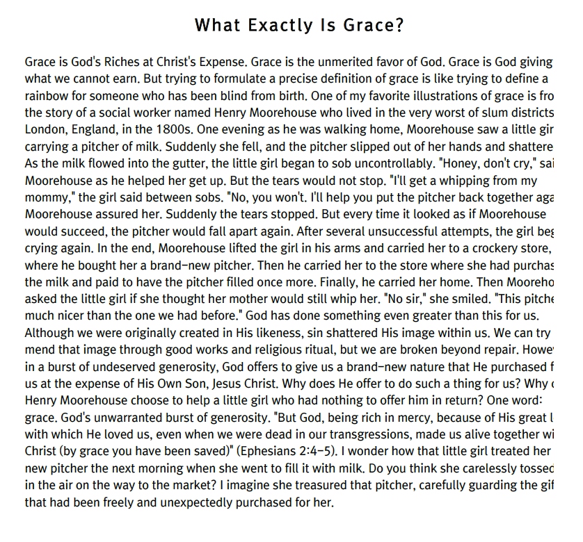 What Exactly Is Grace? 페이지 정보 작성자 한미연합감리교회 조회 1,066회 작성일 22-02-27 10:22 목록 본문 What Exactly Is Grace? 이전글2022년 사순절 행사 22.02.27 다음글담배꽁초 22.02.22 댓글 0 댓글목록 등록된 댓글이 없습니다. 목록
