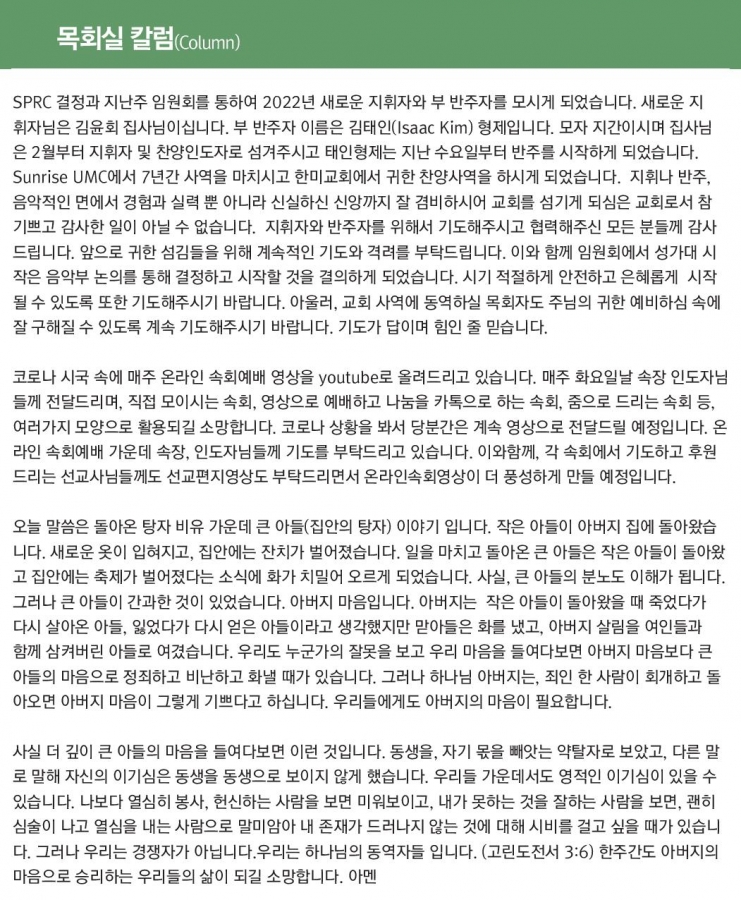 2022년 SPRC 임원회 페이지 정보 작성자 한미연합감리교회 조회 1,126회 작성일 22-01-23 04:28 목록 본문 2022년 SPRC 임원회 이전글How is Jesus "the Truth?" 22.01.29 다음글What is the “Bread of Life?" 22.01.23 댓글 0 댓글목록 등록된 댓글이 없습니다. 목록