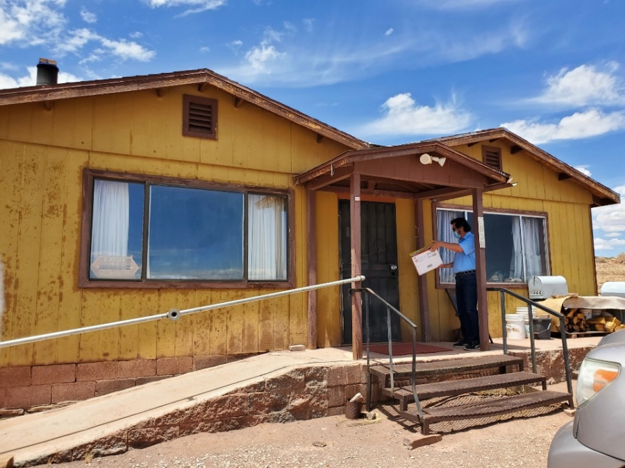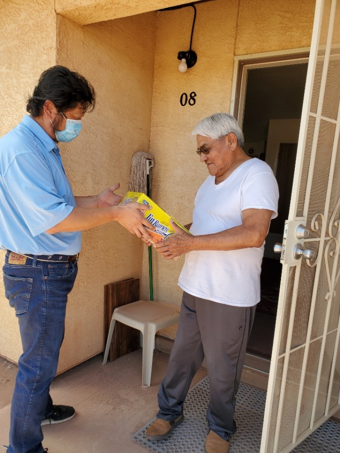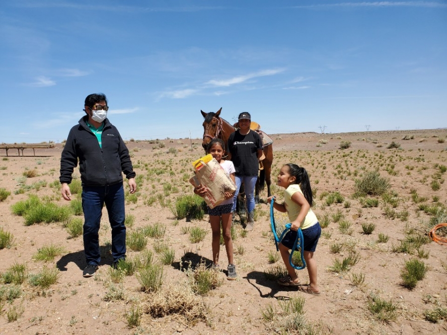 마스크, 라면, 쌀, 마카로니, 초코파이, 옷, 신발, 모자 등 나바호 사람들에게