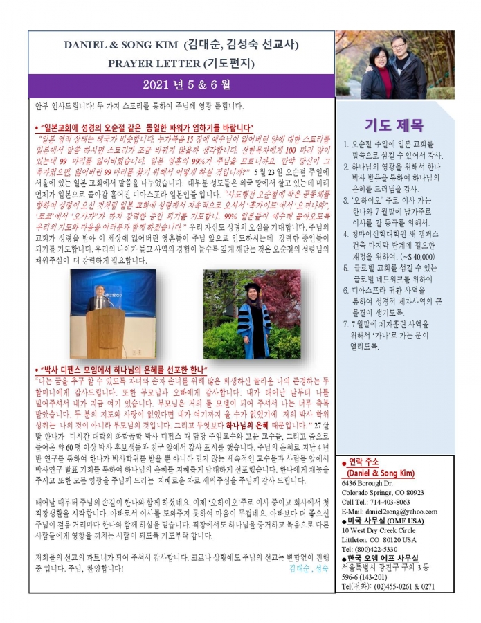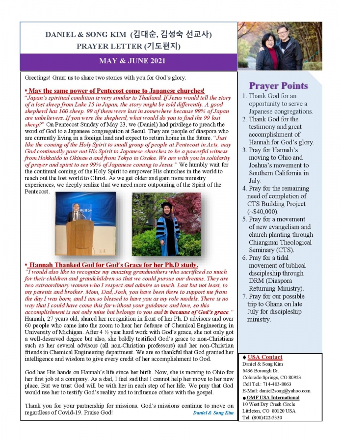 2021 태국에서 온 선교편지 5월&6월 페이지 정보 작성자 한미연합감리교회 조회 1,395회 작성일 21-05-30 06:08 목록 본문 2021 태국에서 온 선교편지 5월&6월 이전글2021 7월 임마누엘연합감리교회 온 선교편지 21.07.21 다음글2021년 4월 태국에서 온 선교편지 21.04.24 댓글 0 댓글목록 등록된 댓글이 없습니다. 목록