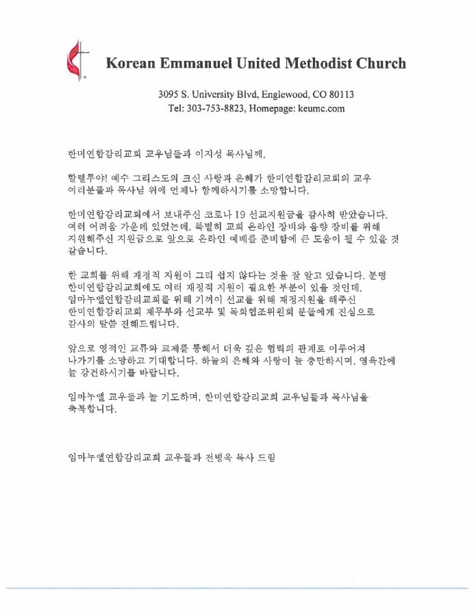 2021 7월 임마누엘연합감리교회 온 선교편지