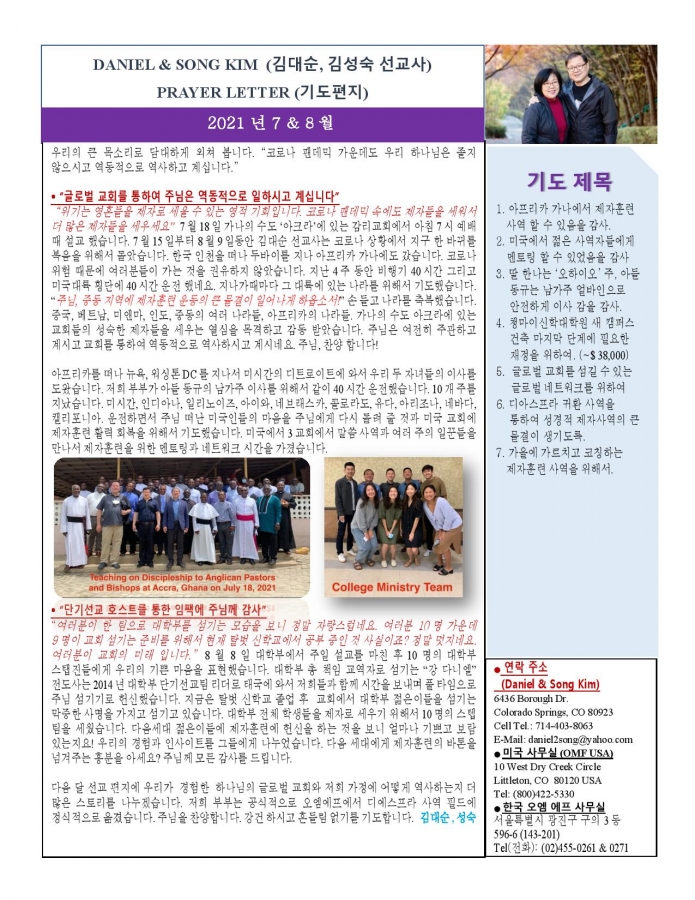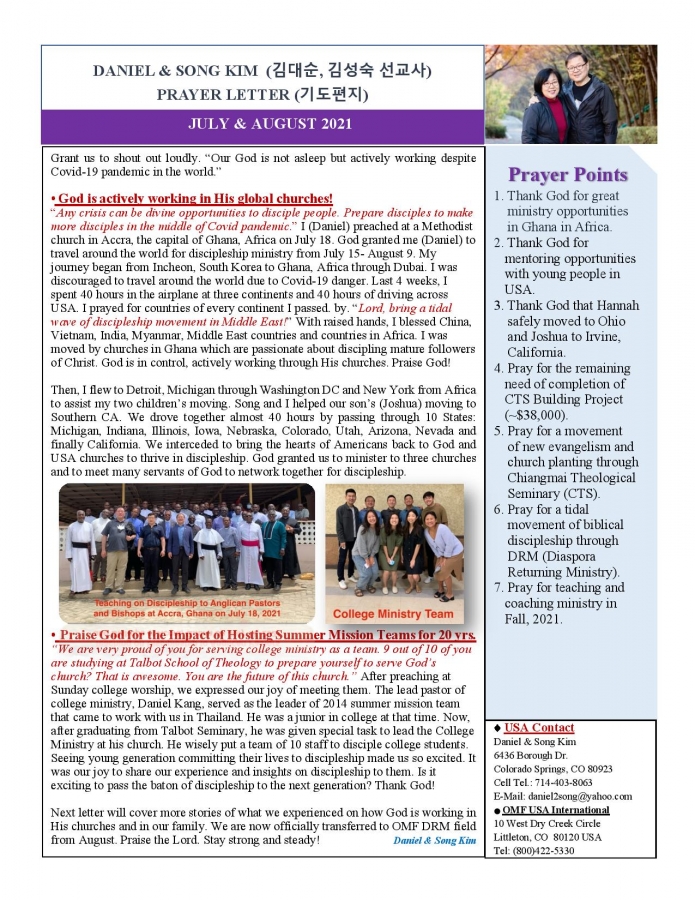 2021 태국에서 온 선교편지 7월&8월