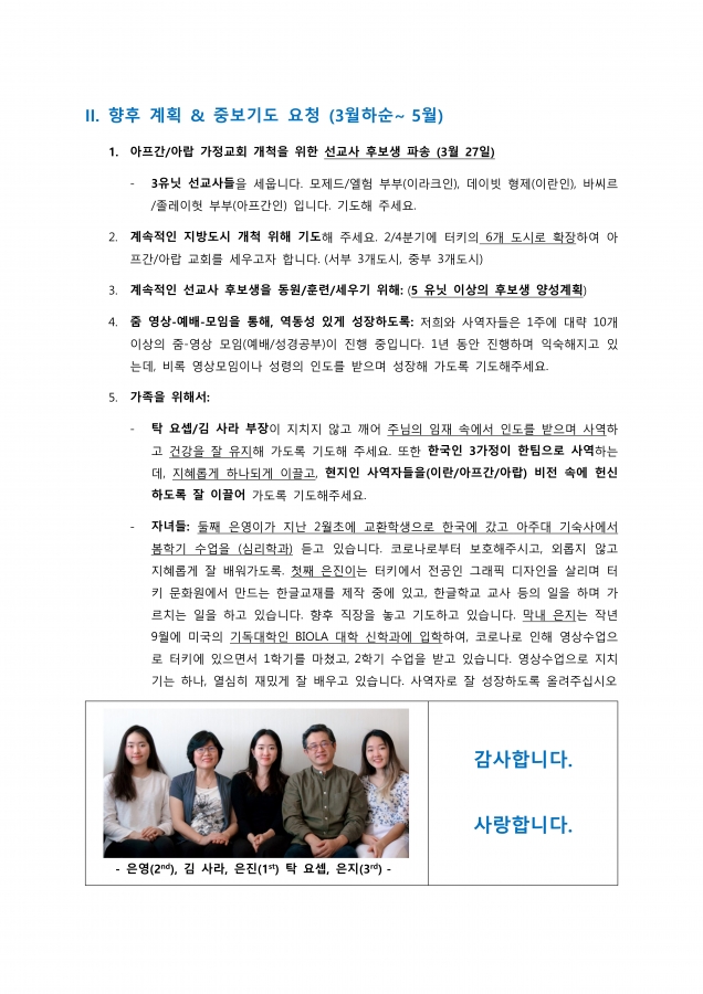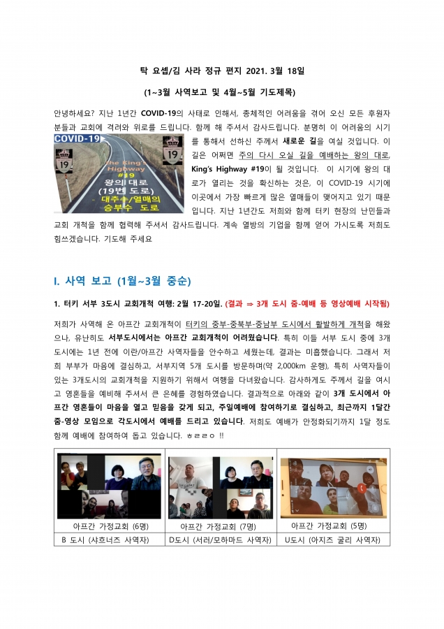 터키에서 온 선교편지 페이지 정보 작성자 한미연합감리교회 조회 913회 작성일 21-03-28 06:16 목록 본문 터키에서 온 선교편지 이전글Prison Ministry~변화 프로젝트 교도소 문서 선교에서 온 선교편지 21.03.28 다음글2021 나바호에서 온 사역영상 21.03.26 댓글 0 댓글목록 등록된 댓글이 없습니다. 목록