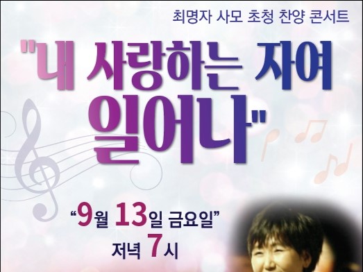 최명자 사모님 찬양 콘서트! 깊고 따듯한 은혜가 우리 모두의 마음을 촉촉히 채워준 잊지 못할 콘서트였습니다. 마음과 힘을 다해 찬양해 주신 사모님께 감사드립니다!