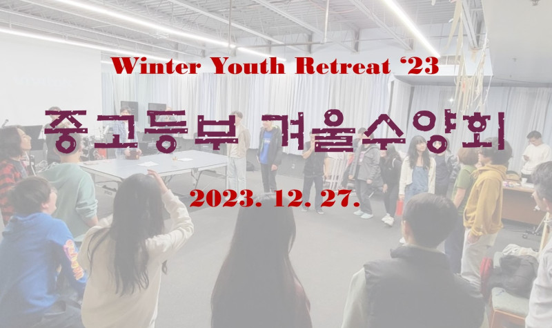 지난 12월 27일 중고등부 겨울 수양회를 새생명교회와 함께 가졌습니다. 말씀은 우리 교회 김태준 담임 목사님께서 전해 주셨고, 새생명교회의 찬양팀, 교사들과 함께 한미교회 이마이클 Youth Director, 그리고 이희야 집사님께서 봉사자로 섬겨주셨습니다. 학생들은 예배, 소그룹 모임, 게임등을 즐기며 하루종일 은혜의 시간을 가졌습니다. 우리 자녀들에게 귀한 은혜의 자리를 허락해 주신 하나님께 감사를 드립니다!