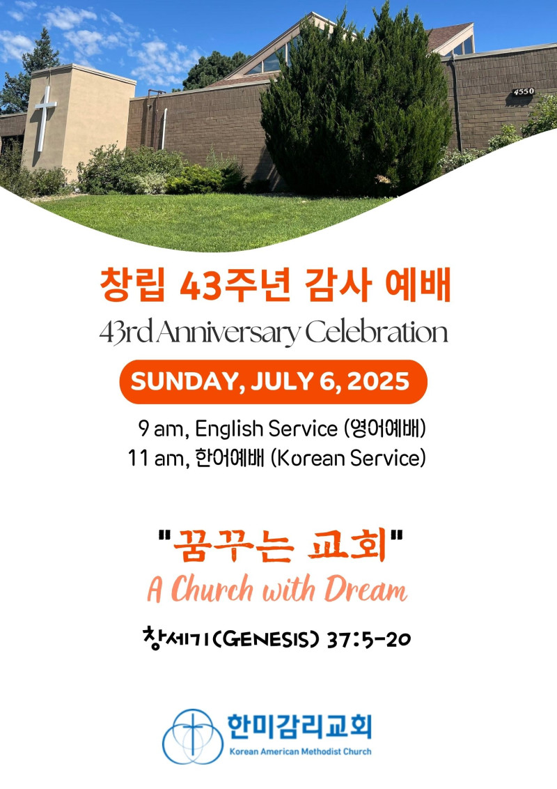 It was in 1982 when twenty believers gathered at the home of Exhorter Kwi-Yeol Cha to hold the very first worship service of Hanmi Methodist Church. Now, by God’s amazing grace, we joyfully celebrate the 43rd anniversary of our church. As we reflect on the journey of these many years, we cannot help but offer our heartfelt thanks and praise to the Lord who has faithfully guided and sustained us.