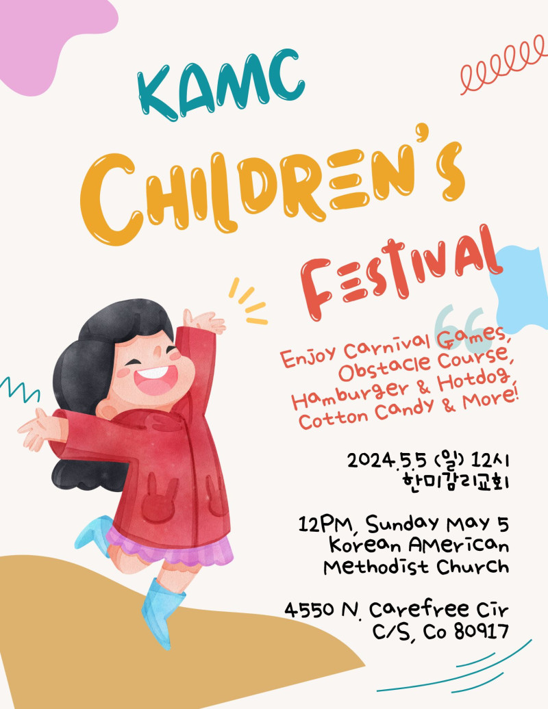 어린이 주일을 맞아 즐거운 축제를 준비했습니다. 어른도 함께 즐길 수 있는 대형 Obstacle Course와 배구코트, cornhole등의 게임과 함께 학부모회에서 햄버거와 핫도그를 무진장 준비했습니다. 솜사탕과 함께 어릴적 추억을 소환하며 photo booth에서 새로운 추억을 사진에 담아 보세요! 한미교우 모두를 초대합니다! 주일 2부 예배후에 시작합니다!